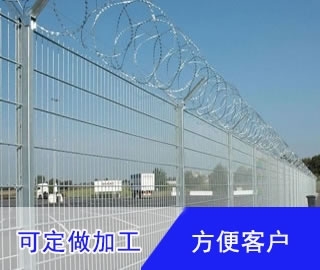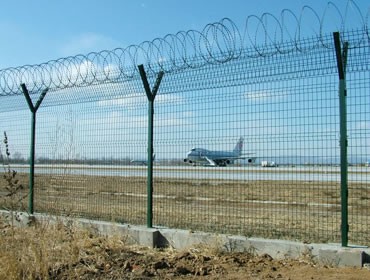 机场围栏网是安全防盗连接件和热镀锌刀片刺笼组成是强度和安全防御性级别很高的隔离栅产品。近年来,机场围栏网被广泛应用在机场,军事基地等高安全场所。(如果在机场围栏网顶部加装刀片刺丝、刀片刺绳后又很好的增强了安全防护性能。)